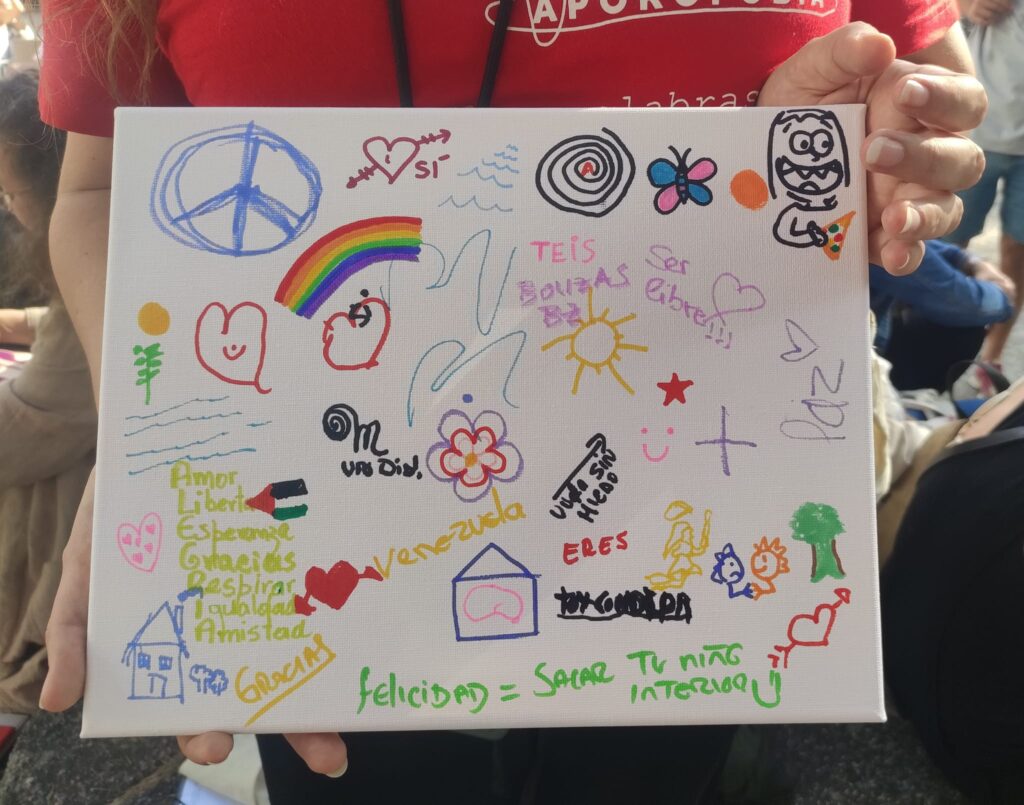 Para rematar de xeito redondo o encontro, as persoas participantes desprazáronse á Praza 8 de marzo para realizar unha última actividade en grupo (a elaboración dun debuxo a base de trazos de todos/as asistentes) e a lectura do manifesto que incluía as cinco reclamacións máis votadas durante a xornada da tarde: