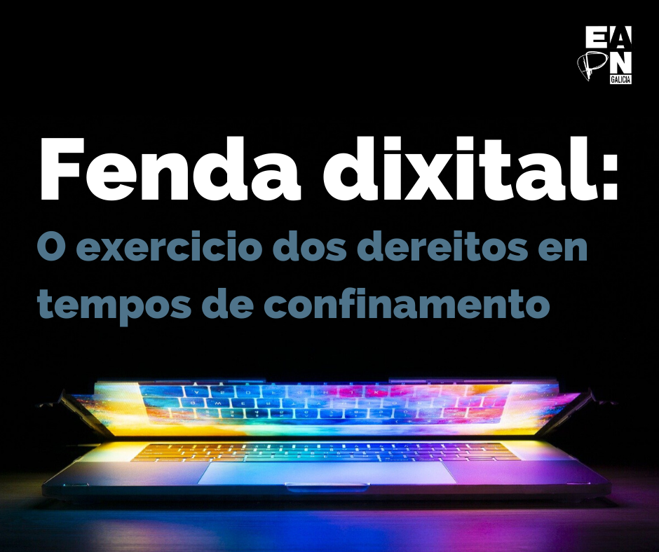 É por isto que dende o Grupo de Participación de EAPN Galicia impulsouse un proceso de consulta que culmina coa presentación do informe “Fenda dixital: o exercicio dos nosos dereitos en tempo de confinamento“. Neste proceso se fixo unha análise dos problemas detectados ante o aumento da fenda dixital, e especialmente de formulación de propostas de mellora, dirixidas tanto a entidades sociais como ás institucións públicas, que permitan facilitar o acceso aos dereitos máis esenciais da poboación en situación de pobreza e exclusión.