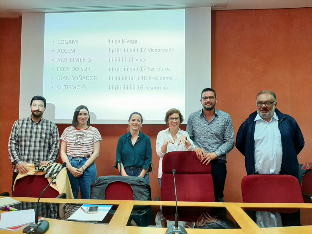 A nova Xunta Directiva pasa a estar formada por Eloina Ingerto (Fundación Juan Soñador), Daniel Bóveda (ACCEM), Saray Durán (Ecos do Sur), Patricia Blanco (Autismo Galicia), Javier Hermida (Alzheimer Galicia) e Ignacio Rodríguez (COGAMI)