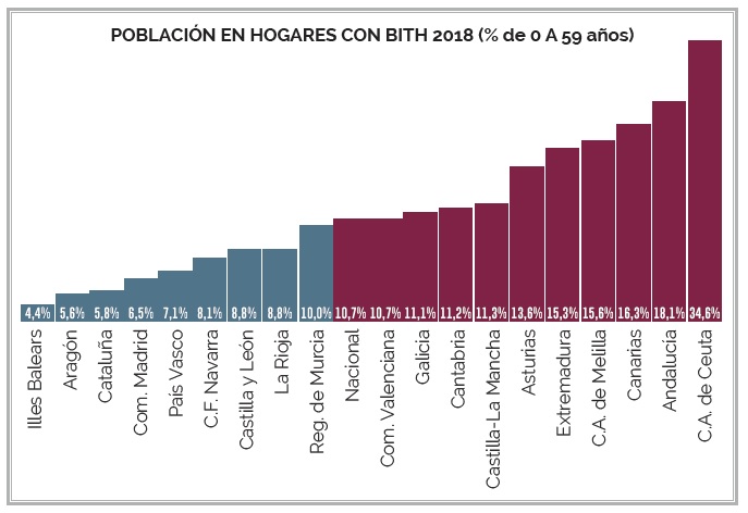 - O 11,1% da poboación menor de 60 anos que reside en Galicia vive en fogares con baixa intensidade de emprego. Aínda que se reduciu este ano nove décimas por primeira vez dende o ano 2012, a cifra posiciónase por encima da media nacional.