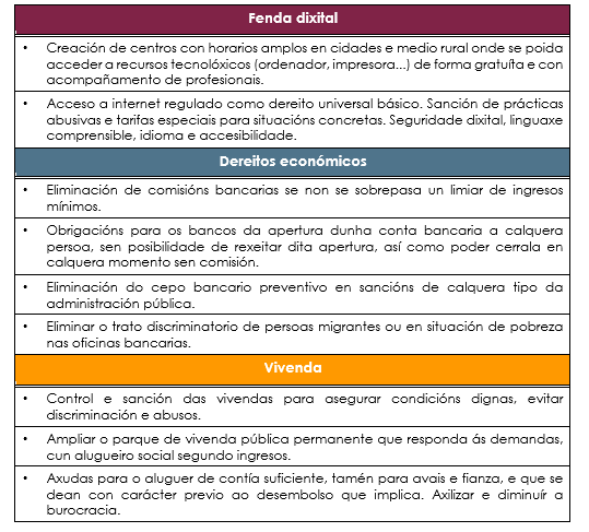 O encontro centrouse en torno a tres temáticas que están a agravar o empobrecemento da poboación galega: fenda dixital, exclusión bancaria ou financeira e acceso a vivenda