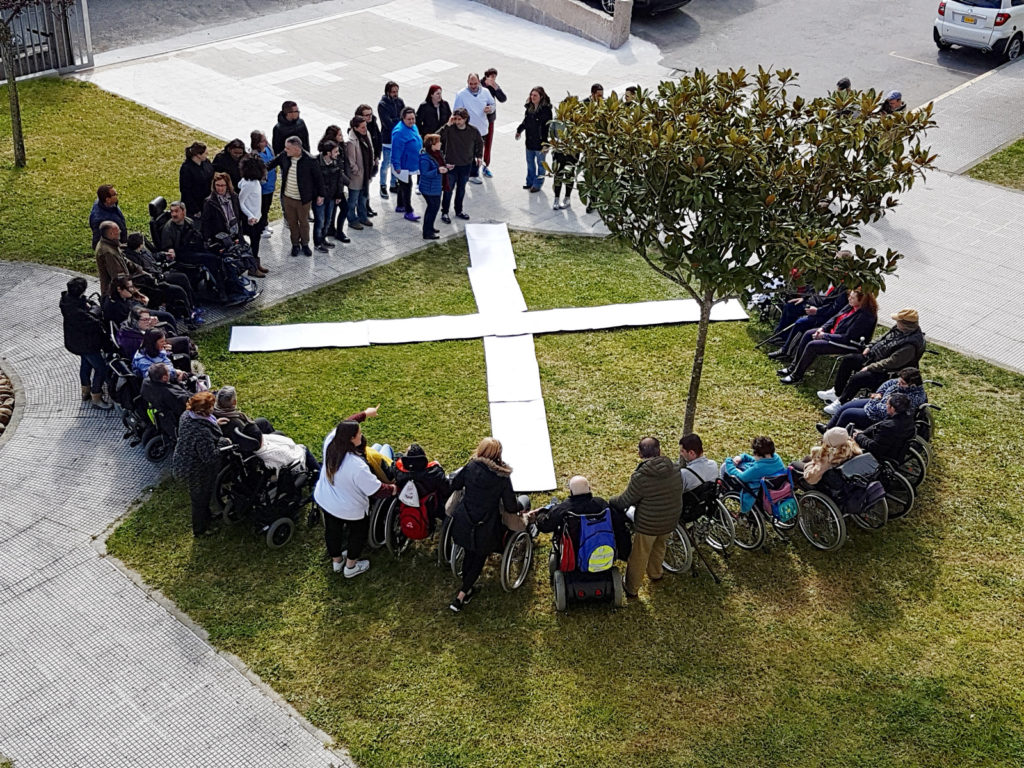 Unha gran “X” humana anima a contribuíntes a marcar a casiña de fondos sociais na Declaración da Renda